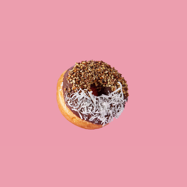 Ingredientes: Harina deshidratada de papa orgánica, fermento de linaza, stevia, fécula de maíz, lechada de arroz, se procesa en aceite de coco. Cobertura de: cacao, mitad coco y mitad nuez.
